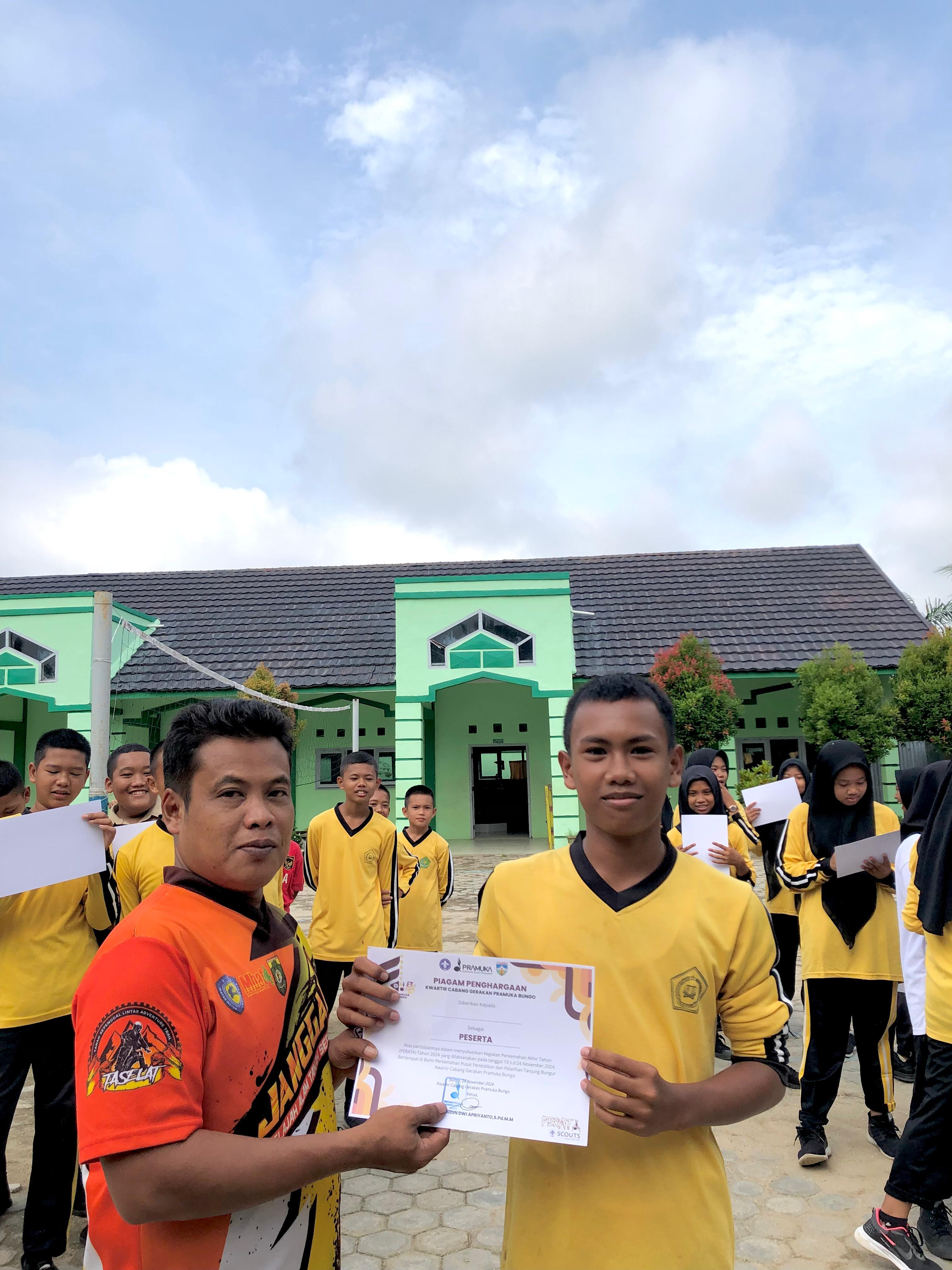 Dalam waktu bersamaan di lakukan penyerahan sertifikat dan Tanda Ikut Serta (TISKA) PERATA 2024 oleh Wakil Kepala Madrasah Bidang Kesiswaan Bapak Subhan, S.Pd.I kepada seluruh kontingen MTs Negeri 7 Bungo.(MR)