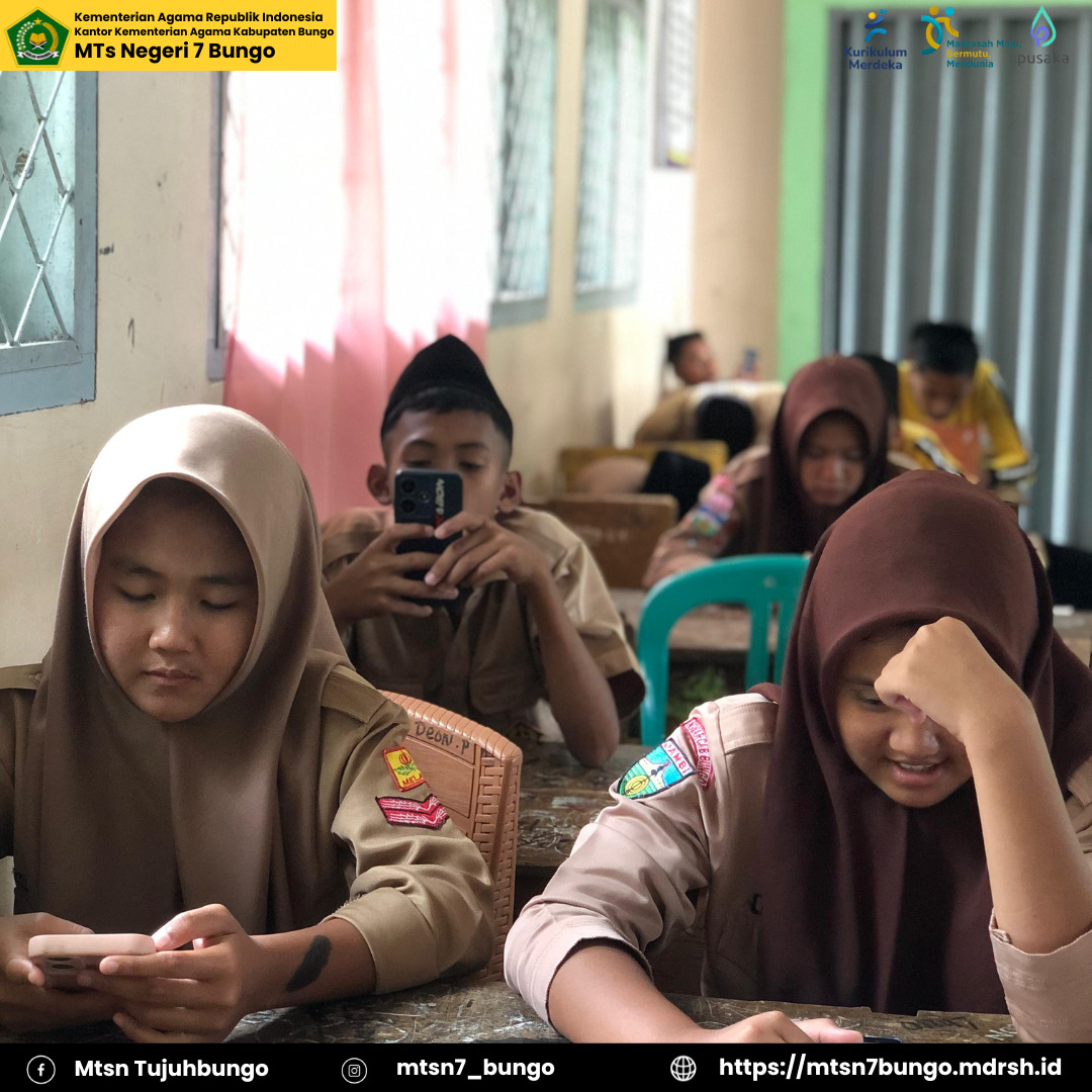Tanah Tumbuh (Humas MTsN 7 Bungo) - Madrasah Tsanawiyah Negeri (MTsN) 7 Bungo Menerapkan Asesmen Sumatif Akhir Semester (ASAS) Ganjil Tahun Pembelajaran 2024/2025 Menggunakan Android, Sabtu (07/11/2024). Sama seperti tahun sebelumnya , pelaksaan Asesmen Sumatif Akhri Semester (ASAS) Ganjil di MTs Negeri 7 Bungo Menerapkan Asesmen Menggunakan HP Android, sebagai langkah inovatif dengan mengadakan asesmen menggunakan Android. Langkah ini diambil untuk meningkatkan efektivitas pembelajaran dan mempersiapkan siswa dalam menghadapi teknologi di era digital.