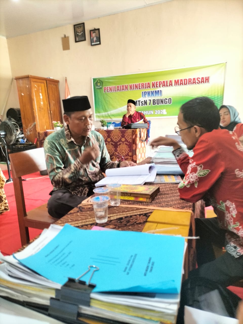 Dalam pelaksanaan Penilaian Kinerja Kepala Madrasah (PKKM),MTs Negeri 7 Bungo mendapatkan jadwal penilaian pada hari Rabu tanggal 11 Desember 2024. Untuk tim penilai langsung dari tim penilaian Kantor Kementerian Agama Kabupaten Bungo, dengan 2 orang penilai yakni Drs.H.Sarbaini, M.Pd.I (Selaku pengawas binaan) dan H.Asrul, S.Ag, M.Pd.I (Selaku pengawas yang di tunjuk).
