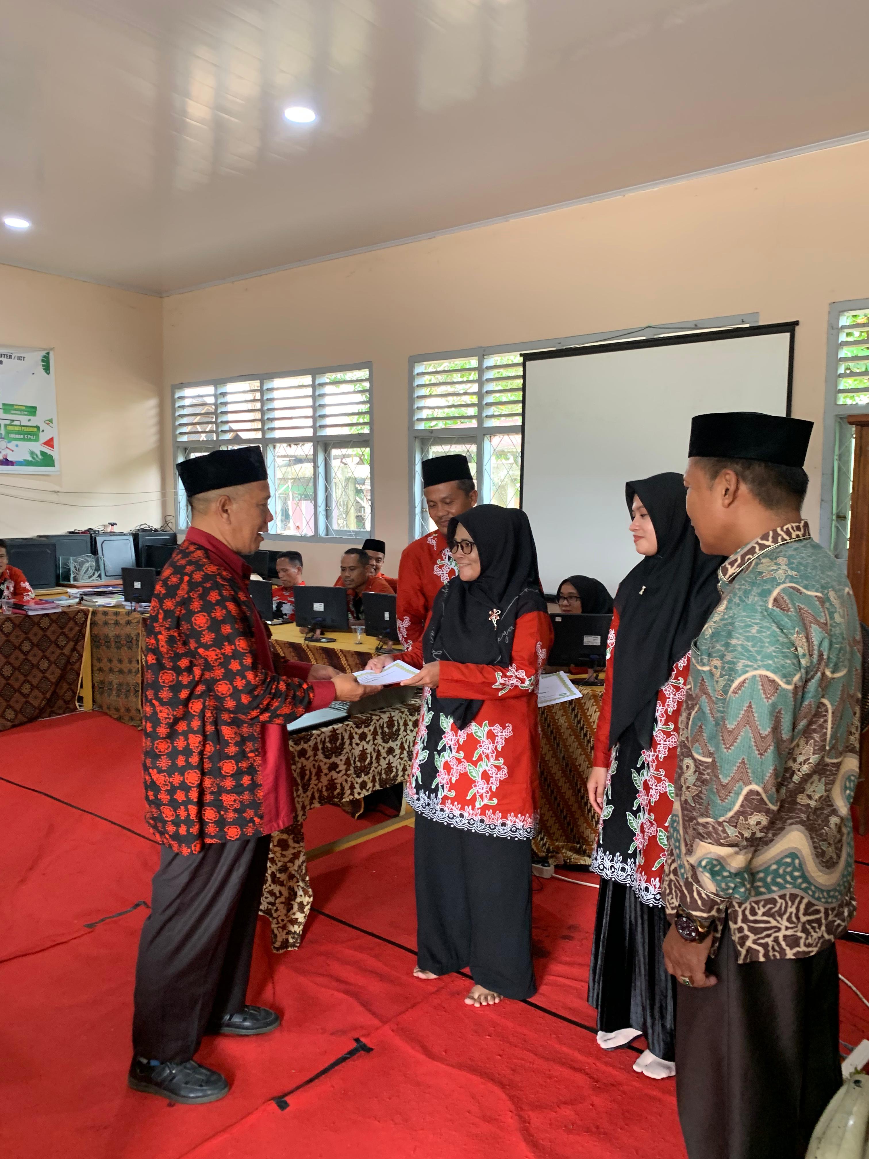 Tanah Tumbuh (Humas) - Kepala Madrasah Negeri 7 Bungo memberi reward kepada guru-guru berprestasi dan terbaik, Rabu (11/12/2024). Di sela pelaksanaan Penilaian Kinerja Kepala Madrasah (PKKM) MTs Negeri 7 Bungo kepala madrasah memberi kejutan kepada seluruh guru dan Tenaga Pendik (Tendik) dengan memberi pengumuman nama-nama guru yang berprestasi dan terbaik yang di nilai berbagai aspek tahun 2024.