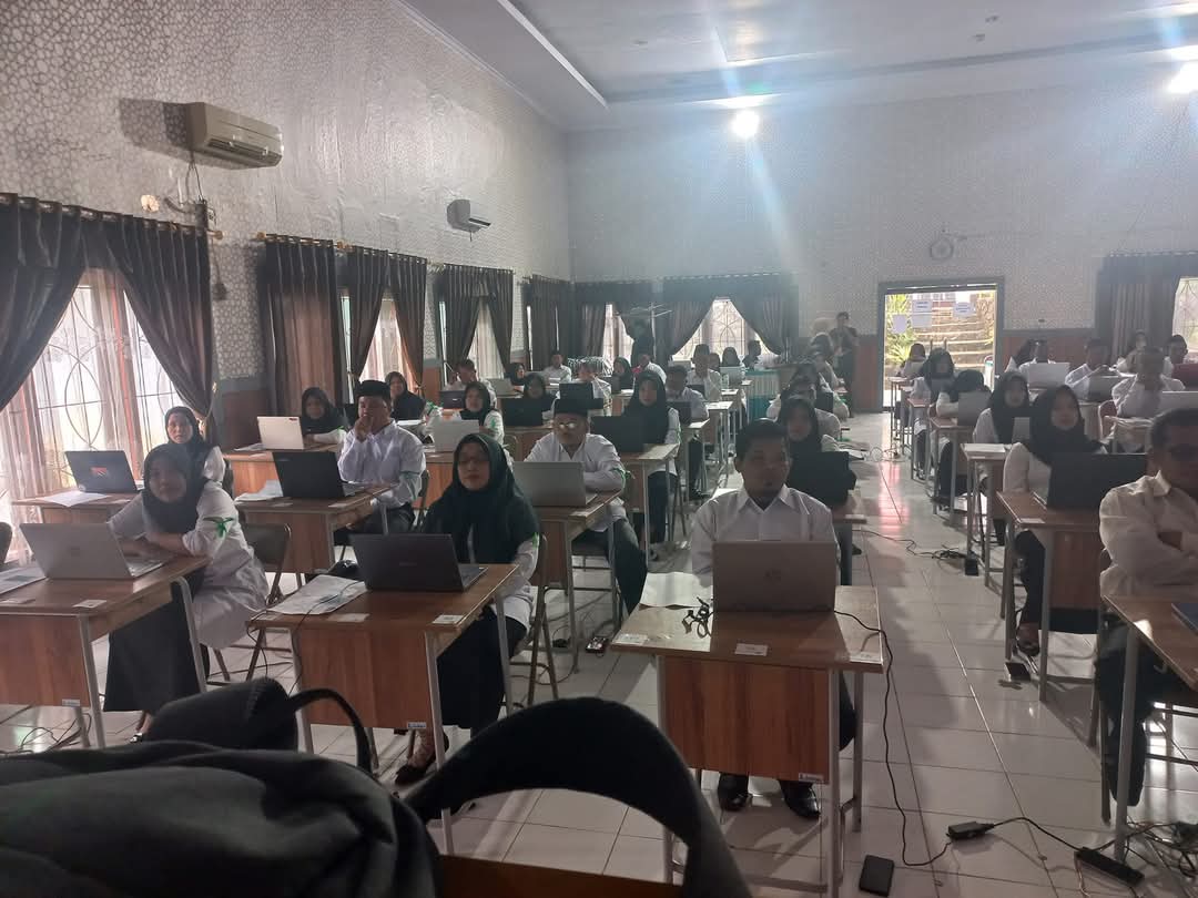 Muara Bungo (Humas) - Sebanyak 11 Orang guru dan Tenaga Pendidik (Tendik) MTs Negeri 7 Bungo mengikuti Tes Seleksi Kompetensi Teknis Tambahan (SKTT) moderasi beragama Seleksi Calon Aparatur Sipil Negara (CASN) Pegawai Pemerintah dengan Perjanjian Kerja (CPPPK) di Aula Kantor Kementerian Agama Kabupaten Bungo, Selasa (17/12/2024). Tes SKTT CASN PPPK yang dilaksanakan serentak secara nasional ini merupakan bagian dari seleksi untuk mengisi posisi PPPK Kementerian Agama Republik Indonesia Tahun Anggaran 2024.