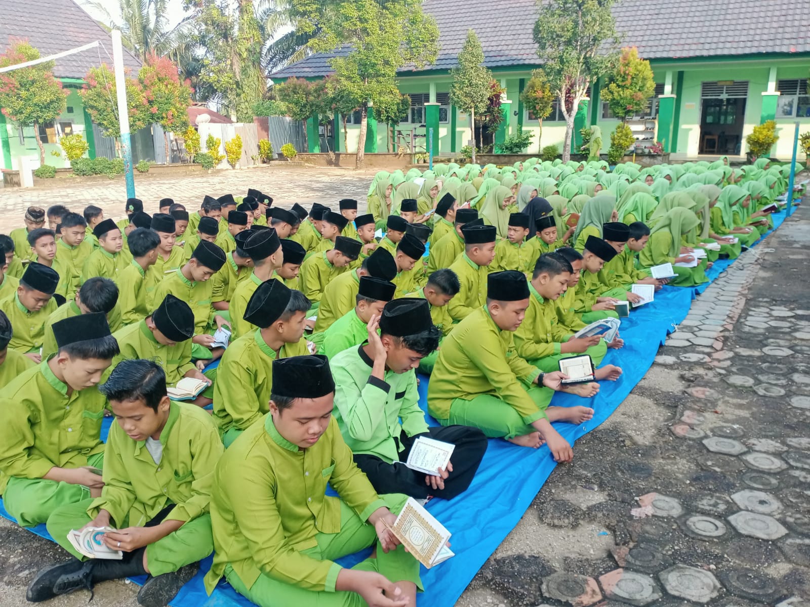 Tanah Tumbuh (MTsN7 Bungo) – Civitas akademika Madrasah Tsanawiyah Negeri (MTsN) 7 Bungo kembali menggelar kegiatan rutin pembacaan Suroh Yasin dan pengajian rutin setiap pagi Jum’at, Jum’at (10/1/2025), yang berlangsung di halaman madrasah.