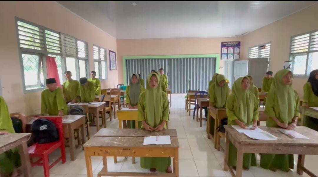 Tanah Tumbuh (MTsN7 Bungo) - Pembiasaan membaca Sholawat sebelum Kegiatan Belajar Mengajar (KBM) di Mulai merupakan salah satu kebiasan dalam upaya membangun krakter islami bagi seluruh siswa MTs Negeri 7 Bungo, Jum’at (10/1/2025).
