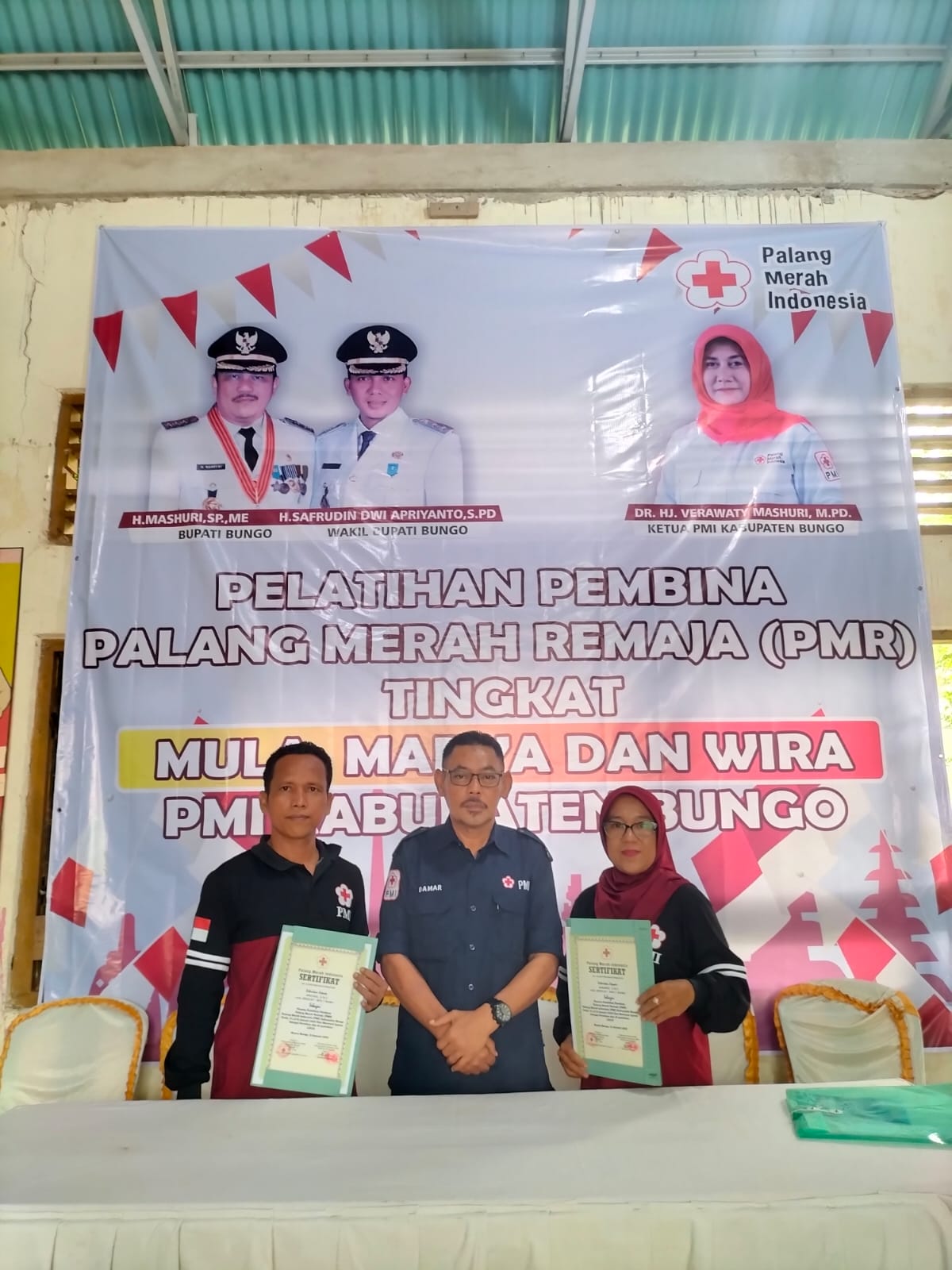 Tanah Tumbuh (MTsN7_Bungo) - Bertempat di Aula Bumi Perkemahan Candika Muara Bungo, para pembina Palang Merah Remaja (PMR) PMR telah mengikuti pelatihan yang diselenggarakan oleh PMI Kabupaten Bungo, Rabu (15/1/2025). Kegiatan ini di laksanakan selama 3 hari yang di mulai dari tanggal 13-15 Januari 2025, dan di ikuti oleh para pembina PMR dari berbagai sekolah/madrasah dalam wilayah Kabupaten Bungo mulai dari tingkat Mula (SD/MI), Madya (SMP/MTs) hingga Wira (SMA/MA/SMK) MTs/SMP/SMA/SMK.