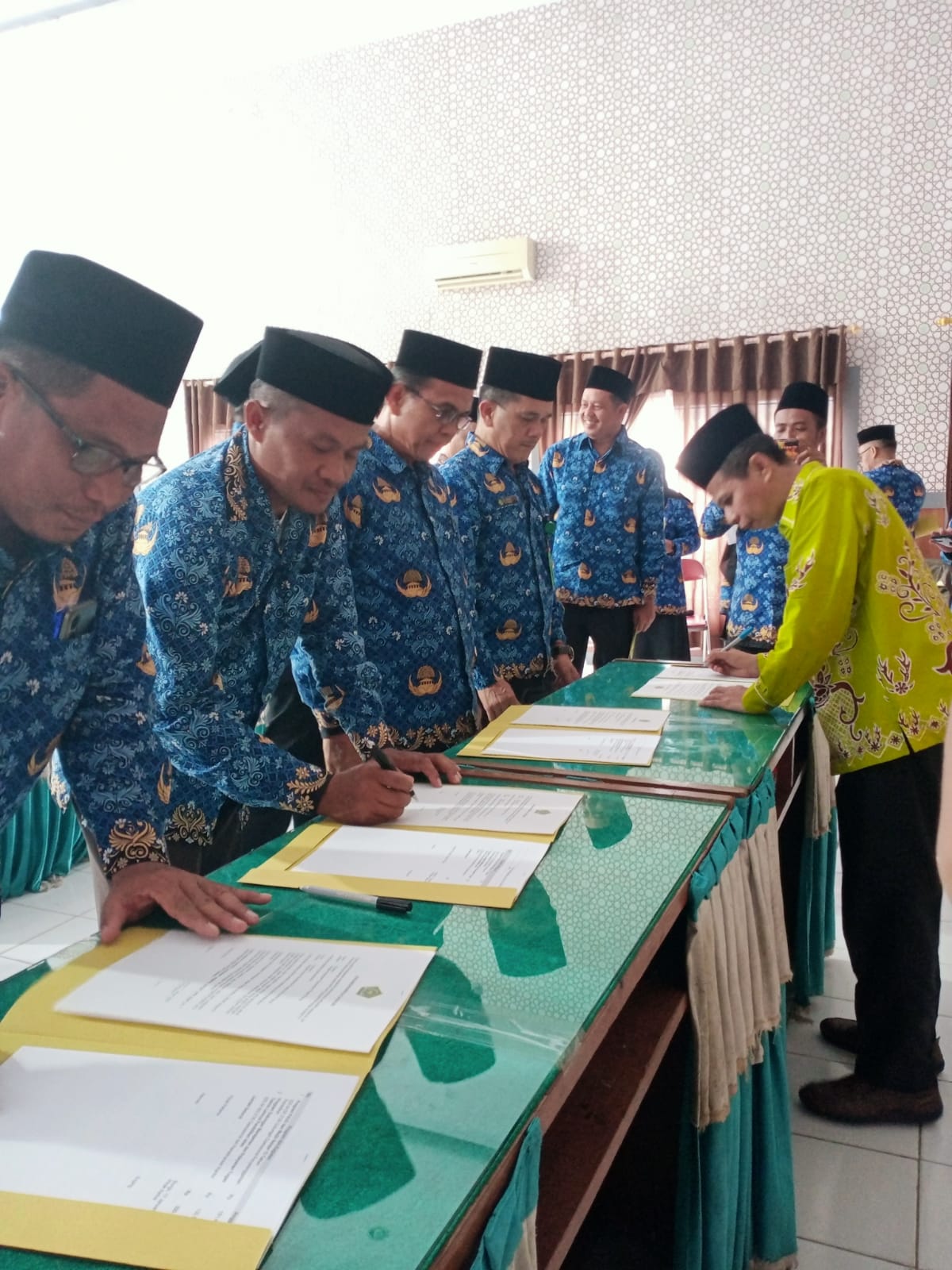 Bertempat di Aula Kantor Kementerian Agama Kabupaten Bungo penandatanganan Perjanjian Kinerja (Perkin) dan Pakta Integritas juga dilakukan oleh Kasubbag Tata Usaha Kemenag Bungo, Kepala Seksi, Kepala KUA dan Kepala Madrasah Negeri dalam wilayah Kabupaten Bungo.