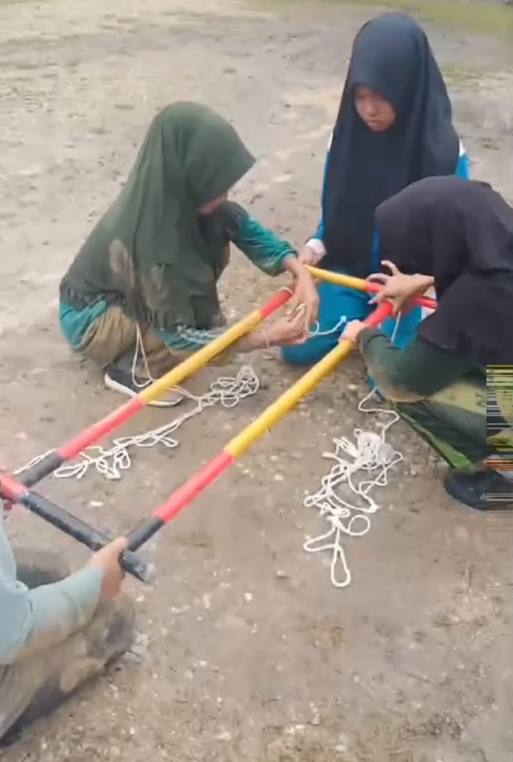 Tanah Tumbuh (MTsN7_Bungo) - Meskipun cuaca cenderung gerimis usai di landa hujan, siswa MTs Negeri 7 Bungo bersama peserta lain yang tergabung dalam pelatihan Palang Merah Remaja (PMR) yang diselenggara oleh Palang Merah Indonesia (PMI) Kabupaten Bungo tampak bersemangat mengikuti kegiatan, Sabtu (18/1/2025) yang berlangsung di bumi perkemahan Candika Muara Bungo.