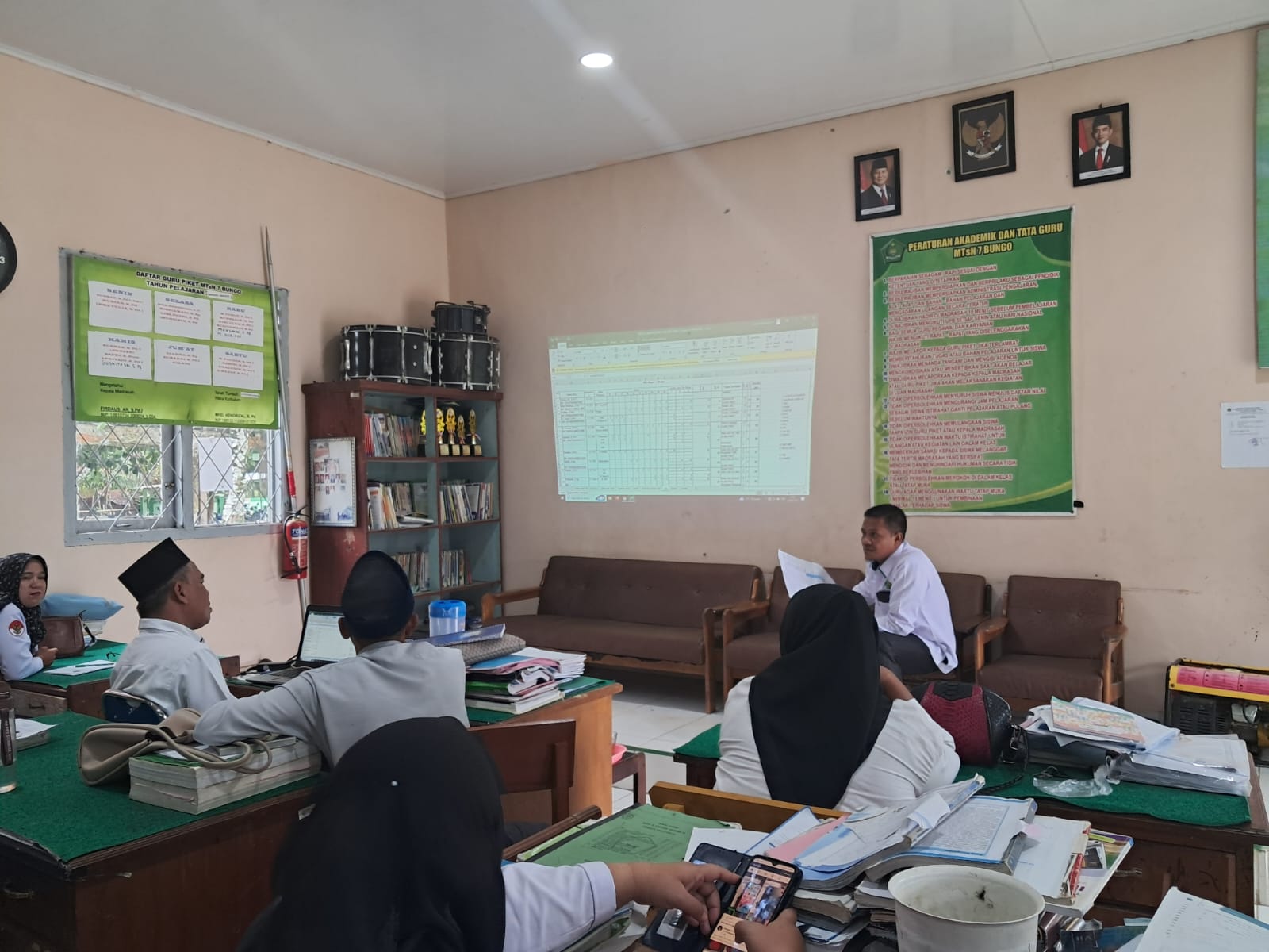 Rapat yang berlangsung di ruangan guru, yang di hadiri oleh seluruh dewan guru dan tendik MTs Negeri 7 Bungo yang membahas berbagai agenda untuk satu semester kedepannya.