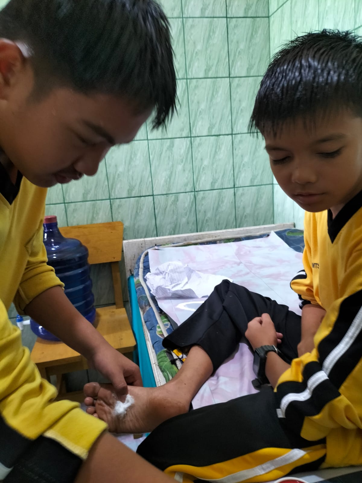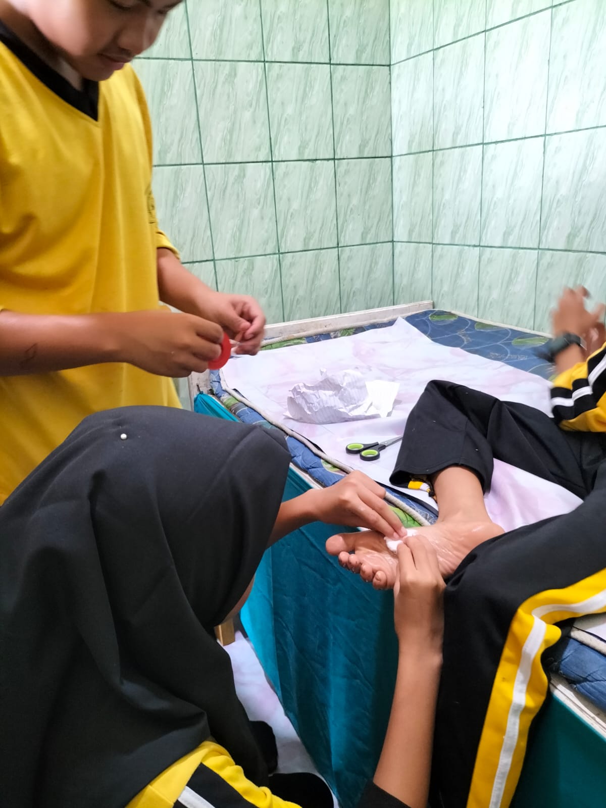 Tanah Tumbuh (MTsN7_Bungo) - Tim Palang Merah Remaja (PMR) MTs Negeri 7 Bungo menunjukkan respons cepat dan sigap dalam menangani siswa yang terluka akibat tertusuk paku, Sabtu (25/1/2025).