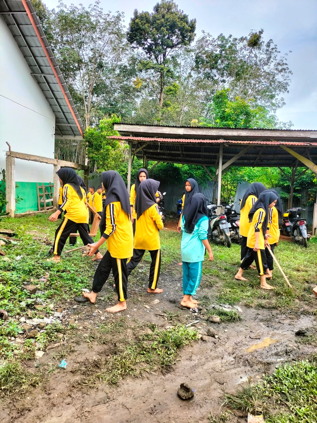 Tanah Tumbuh (MTsN7_Bungo)_Guna menciptakan lingkungan yang asri, bersih dan bebas dari sampah seluruh siswa MTs Negeri 7 Bungo melaksanakan Kegiatan gotong royong (Goro) perkarangan madrasah secara bersama, Sabtu (25/1/2025).