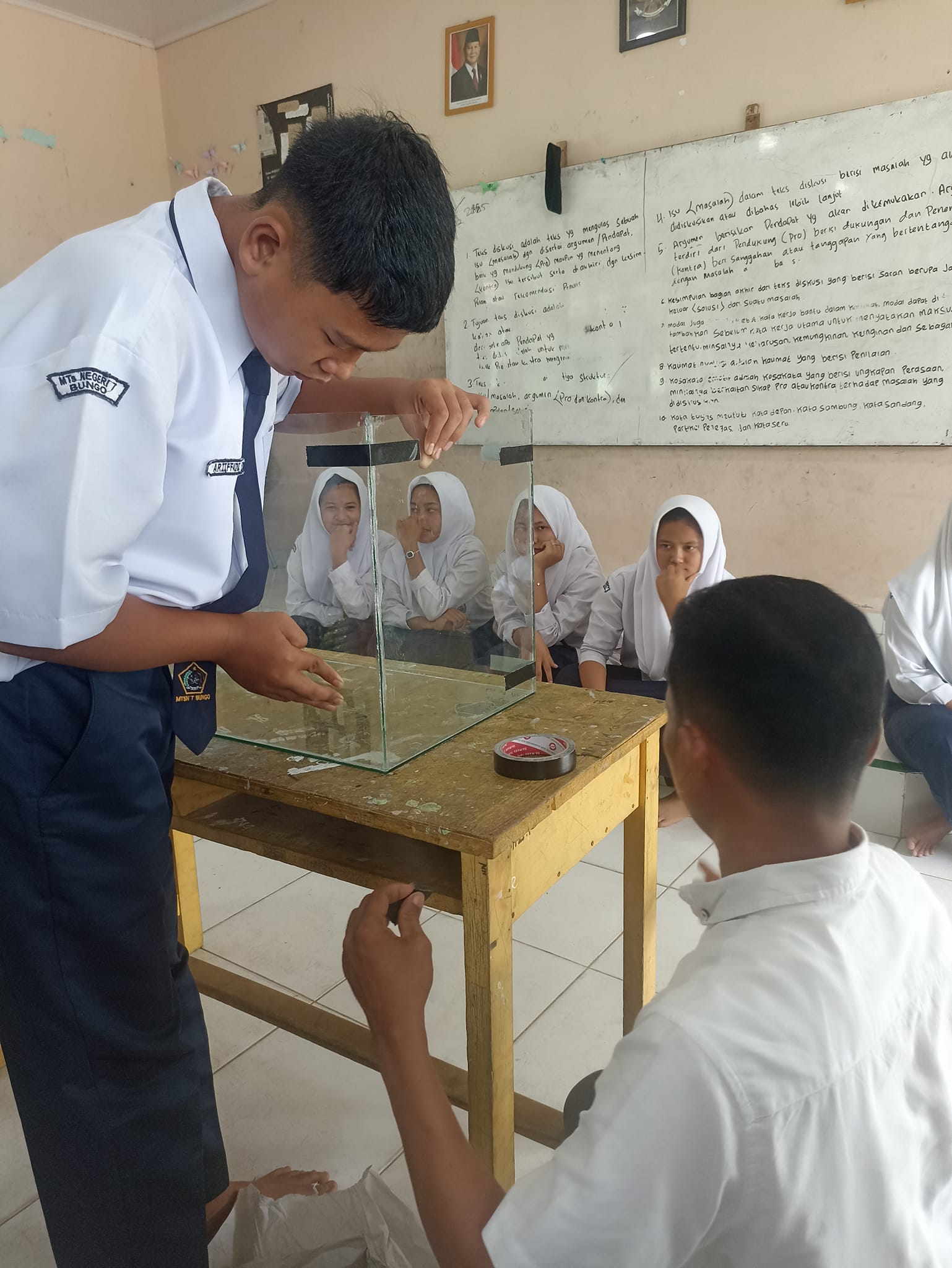 Kegiatan ini berlangsung selama 1 jam pelajaran dan diikuti oleh siswa/I kelas IX A yang terlihat antuis bekerja sama antara satu sama lain dalam satu kelompok untuk menghasil nilai kreativitas mereka pada kaca yang dapat diuganakan kembali menjadi suatu barang yang berguna.