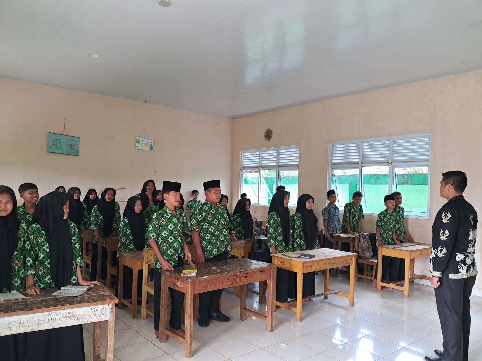 Tanah Tumbuh (MTsN7_Bungo) - Segenap Civitas Akademika MTs Negeri 7 Bungo menghentikan sejenak aktivitas untuk menyanyikan Lagu Kebangsaan Indonesia Raya, Kamis (13/2/2025). Tepat pukul 10.00 WIB, seluruh Civitas Akademika MTs Negeri 7 Bungo berdiri tegak, menghentikan aktivitas sejenak untuk menyanyikan Lagu Kebangsaan Indonesia Raya.