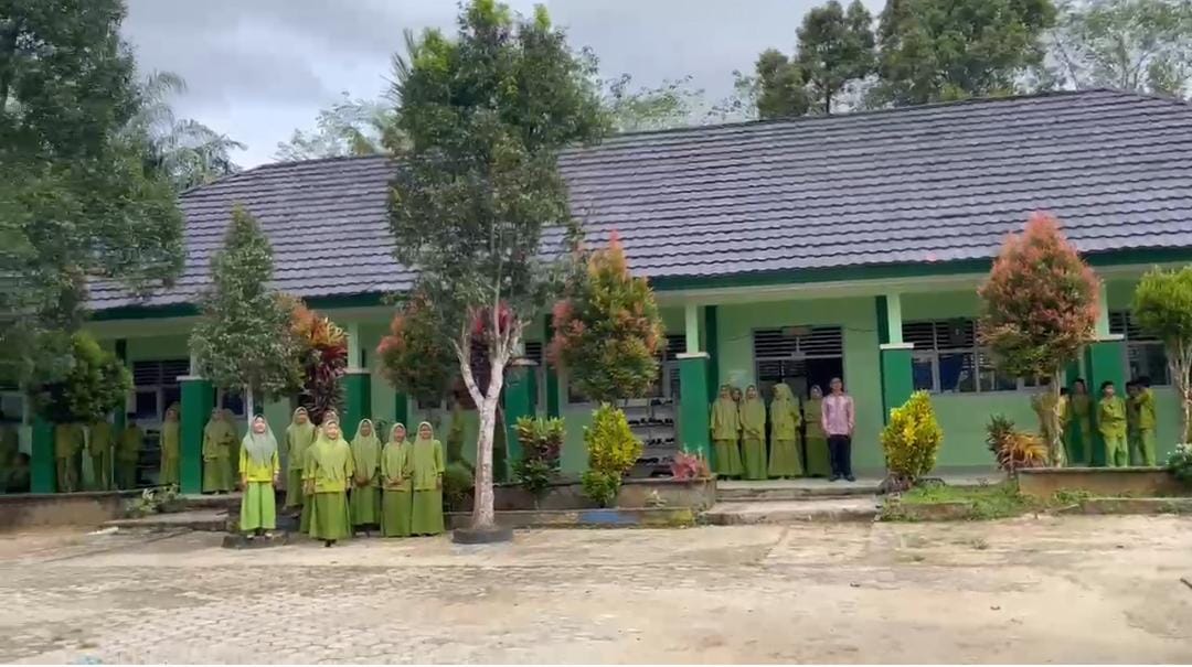 Tanah Tumbuh (MTsN7_Bungo) - Tepat pukul 10.00 WIB seluruh civitas akademika MTs Negeri 7 Bungo menghentikan sejenak aktivitasnya untuk memperdengarkan dan mengikuti pembacaan naskah Pancasila dengan posisi berdiri tegak mengambil sikap sempurna, Jum’at (14/2/2025).