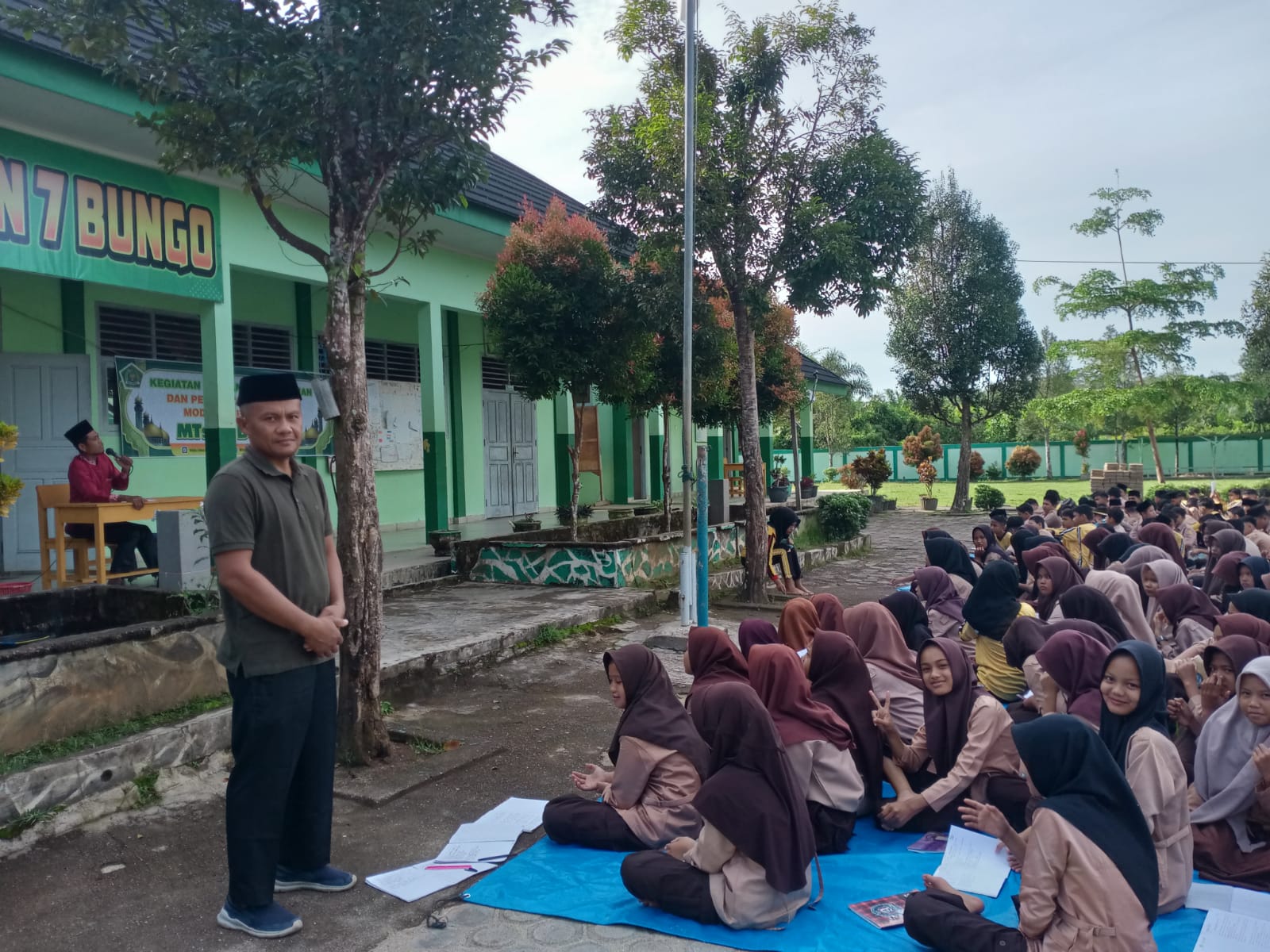 Tanah Tumbuh (MTsN7_Bungo)- Memasuki hari ke ke-15 bulan Ramadhan, MTs Negeri 7 Bungo kembali menggelar Kajian Ramadhan yang kali ini dengan pemateri Ust. Gianto, Sabtu (15/3/2025), yang berpusat di halaman madrasah. Peserta kegiatan Ramadhan yang terdiri dari guru, siswa, dan staf MTs Negeri 7 Bungo tampak sangat antusias menyimak materi yang disampaikan.