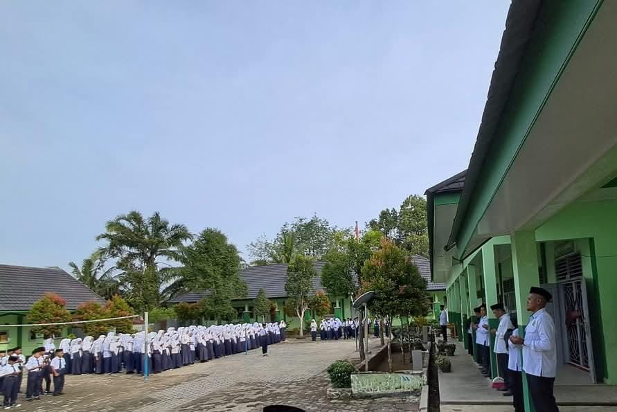 Tanah Tumbuh (MTsN7_Bungo) - MTs Negeri 7 Bungo kembali melaksanakan upacara bendera rutin hari Senin yang berlangsung di halaman madrasah dengan penuh khidmat dan tertib.Senin (14/4/20250. Kegiatan ini merupakan agenda rutin mingguan yang bertujuan untuk menumbuhkan semangat nasionalisme, kedisiplinan, serta menjadi sarana penyampaian informasi dan pembinaan karakter bagi siswa.