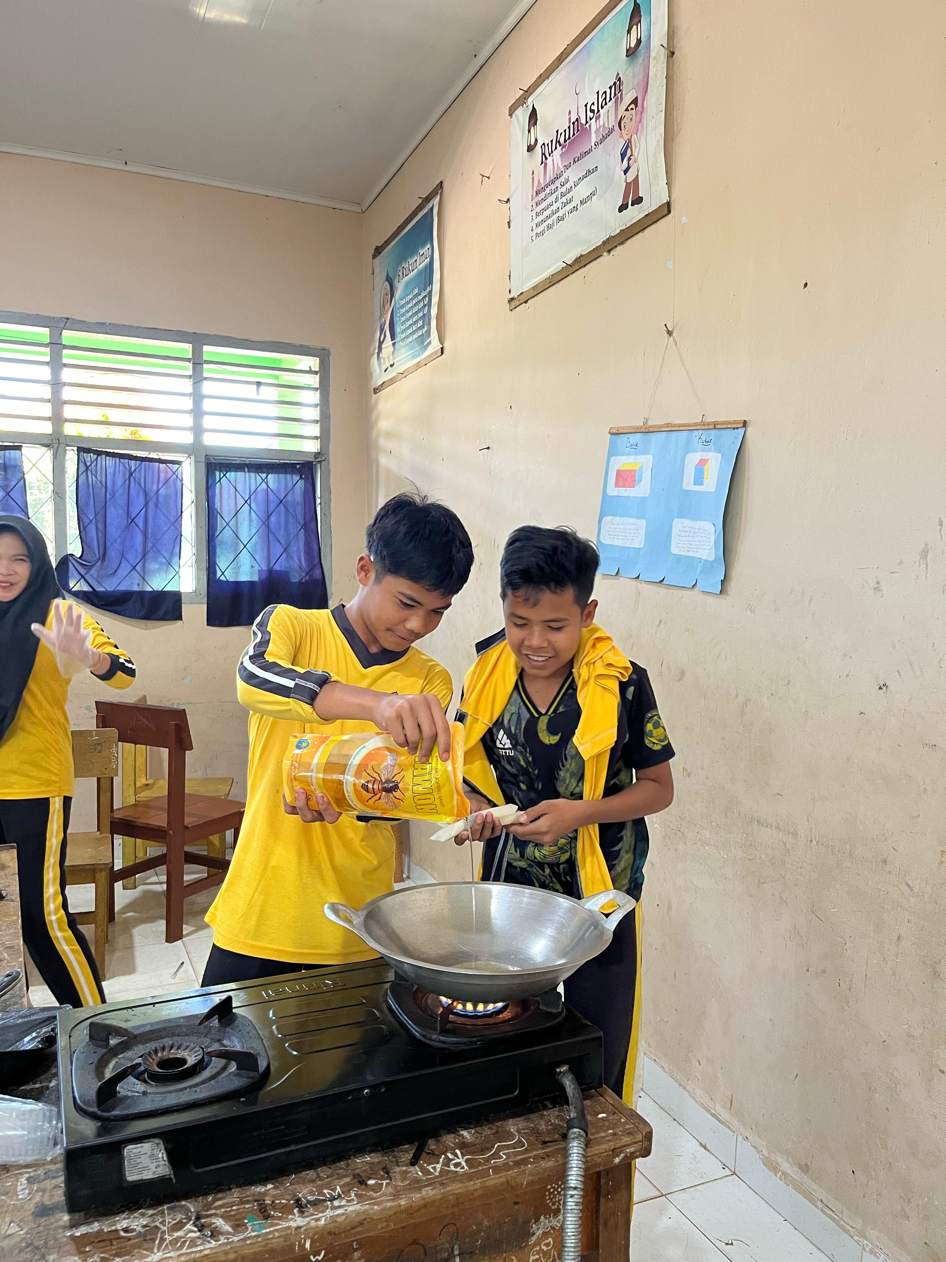 Dengan penuh semangat dan kreativitas, para siswa menunjukkan kemampuan terbaik mereka dalam mengolah berbagai jenis kue. Menariknya, sebagian besar bahan yang digunakan merupakan bahan sederhana yang mudah diperoleh di lingkungan sekitar, seperti ubi dan pisang. Bahan-bahan tersebut kemudian dikreasikan menjadi aneka kue modern yang menggugah selera.