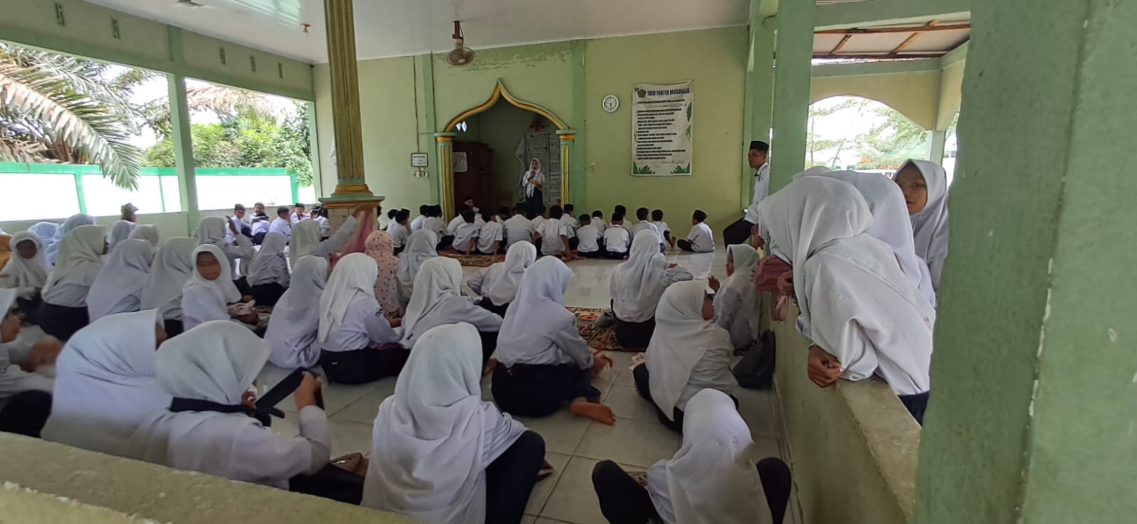 Tanah Tumbuh (MTsN7_Bungo) – Dalam rangka membentuk karakter religius dan membiasakan siswa menjalankan ibadah secara konsisten, MTs Negeri 7 Bungo secara rutin melaksanakan salat Zuhur berjamaah yang diikuti oleh seluruh siswa dan di dampingi oleh guru. Kegiatan ini dilaksanakan setiap hari di mushala madrasah setelah proses belajar mengajar sesi pagi selesai. Senin, (5/5/2025).