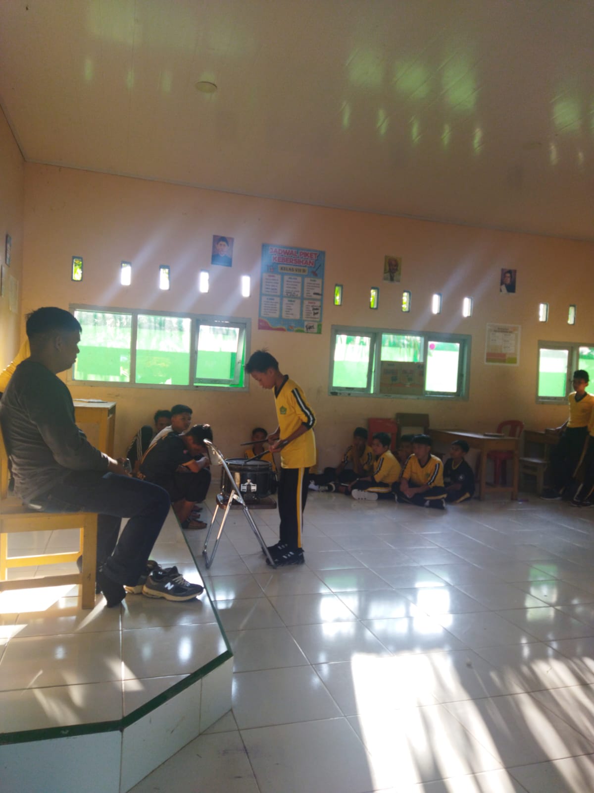 Tanah Tumbuh (MTsN7_Bungo) — Dalam upaya meningkatkan kualitas dan prestasi kegiatan ekstrakurikuler, MTs Negeri 7 Bungo menggelar seleksi pasukan inti untuk Marching Band madrasah, Selasa (6/5/2025). Kegiatan ini dilaksanakan di halaman madrasah maupun di ruang kelas. Kegiatan ini diikuti oleh puluhan siswa dari berbagai tingkat kelas yang tergabung dalam ekstrakurikuler Marching Band.