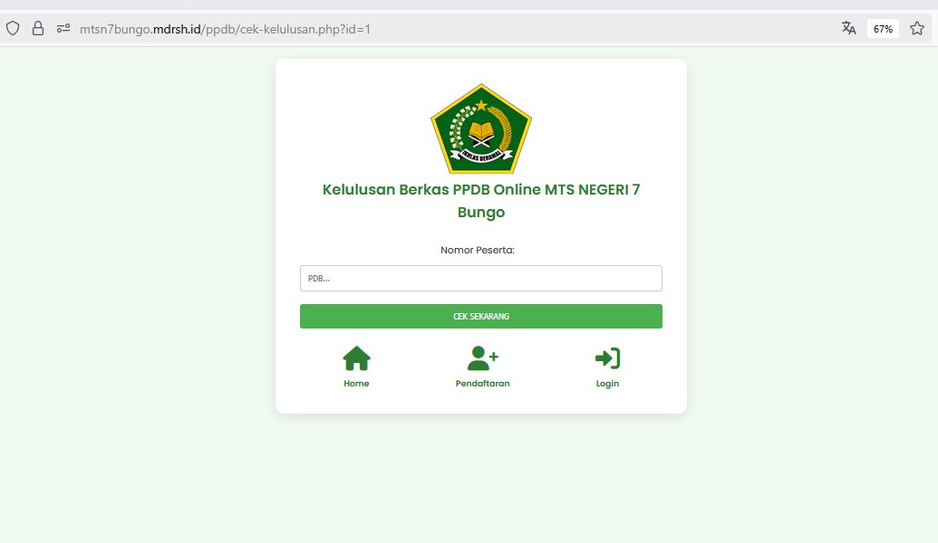 1. Kunjungi laman: https://mtsn7bungo.mdrsh.id/ppdb/cek-kelulusan.php?id=1