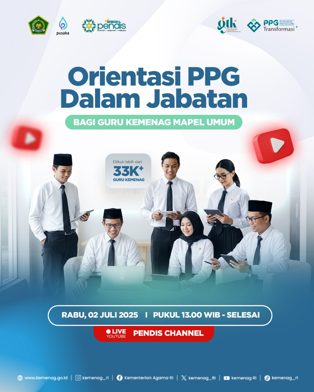 Kegiatan orientasi dan pembekalan ini dilaksanakan secara daring melalui Zoom Meeting dan disiarkan secara langsung melalui kanal YouTube Pendis Channel. Acara dibuka secara resmi oleh Direktur Guru dan Tenaga Kependidikan (GTK) Kementerian Agama RI, Dr. Thobib Al Asyhar, S.Ag., M.Si., serta dihadiri oleh para pejabat dari Ditjen Bimas Kristen, Katolik, Hindu, panitia nasional PPG Kemenag, dan seluruh peserta PPG dari berbagai provinsi.