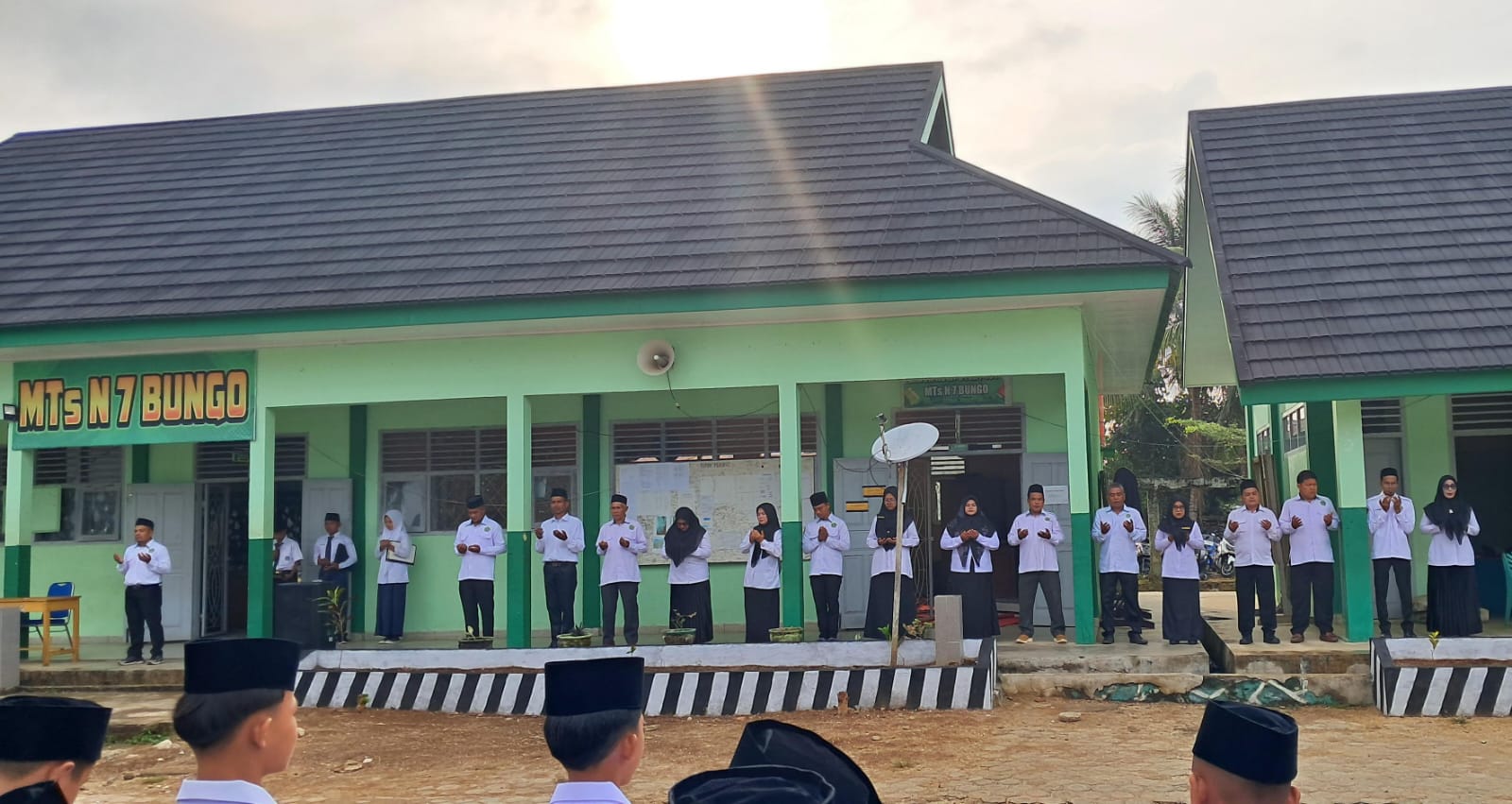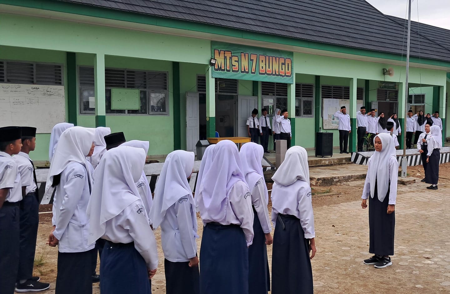 Tanah Tumbuh (MTsN7_Bungo) – MTsN 7 Bungo kembali melaksanakan upacara bendera rutin pada Senin pagi (21/7/2025) yang berlangsung dengan khidmat di lapangan utama madrasah. Kegiatan ini diikuti oleh seluruh peserta didik, Kepala Madrasah, dewan guru, serta tenaga kependidikan.