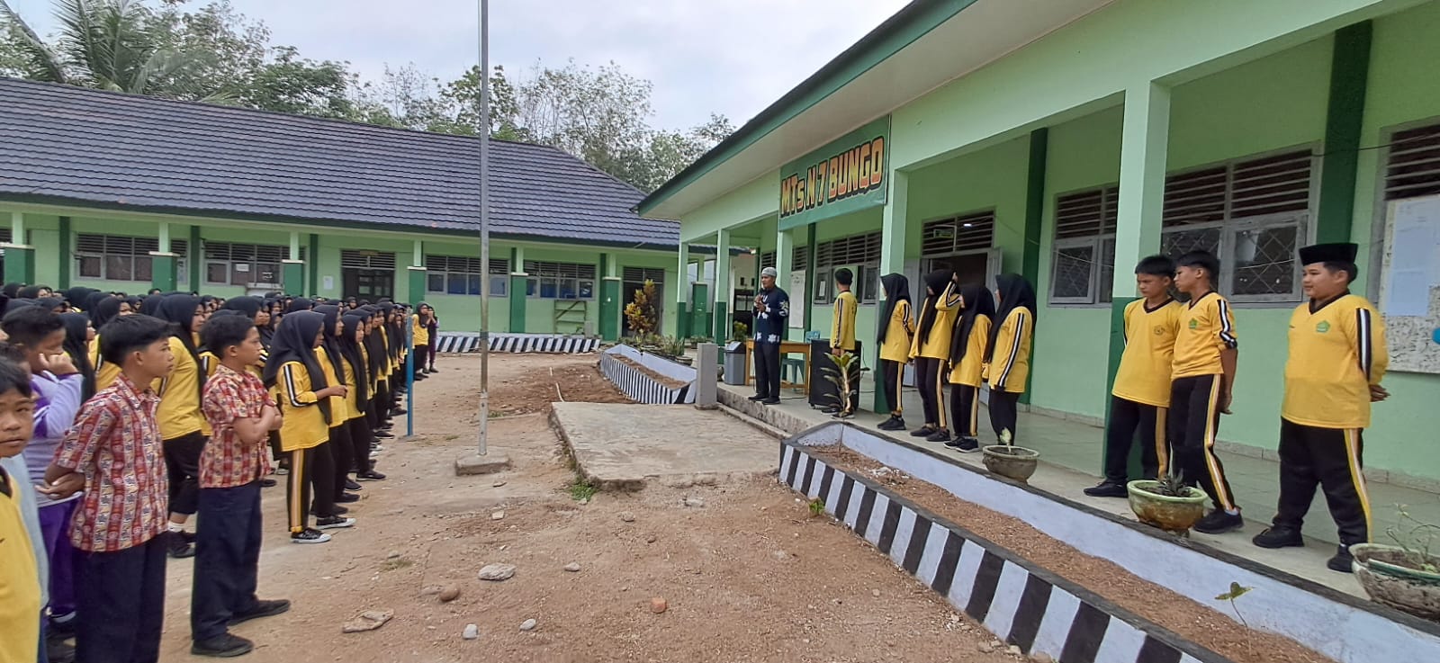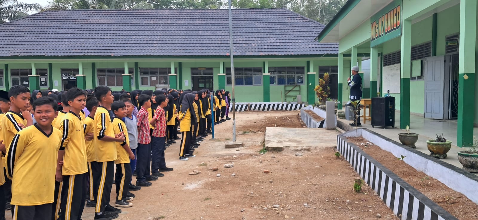 Tanah Tumbuh (MTsN7_Bungo) – Kepala MTsN 7 Bungo, Bapak Firdaus.Ar, S.Pd.I, memimpin langsung apel kedisiplinan siswa yang digelar di halaman utama madrasah, hari ini. Kegiatan ini diikuti oleh seluruh siswa sebagai bagian dari upaya pembentukan karakter disiplin dan tanggung jawab peserta didik.