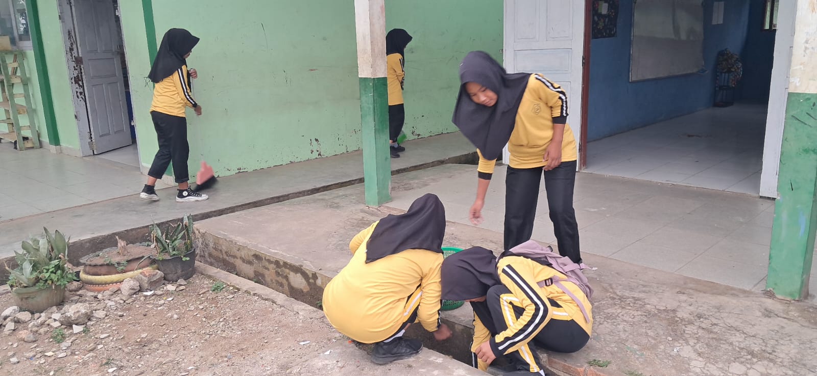 Setelah senam, kegiatan dilanjutkan dengan aksi bersih-bersih lingkungan madrasah. Seluruh siswa bersama para guru membersihkan halaman, taman, dan ruang kelas secara bergotong-royong. Selain menjaga kebersihan, kegiatan ini juga bertujuan menumbuhkan nilai kepedulian, tanggung jawab, dan semangat kebersamaan dalam diri para siswa.
