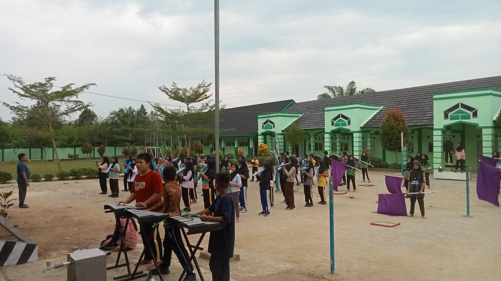 Kegiatan latihan berlangsung di lingkungan MTsN 7 Bungo dengan jadwal yang lebih padat dari biasanya. Seluruh anggota tim, mulai dari pemain alat musik hingga pasukan baris-berbaris, mengikuti latihan secara disiplin di bawah arahan pelatih utama, Bapak Ahmad Mursalin, S.Pd., yang dikenal karena pengalaman dan dedikasinya dalam dunia marching band tingkat sekolah.