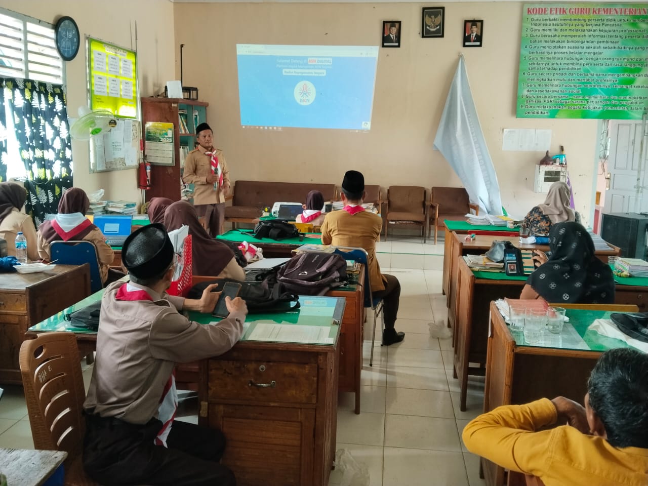 Kegiatan yang berlangsung di ruang guru ini diikuti oleh seluruh ASN, baik Pegawai Negeri Sipil (PNS), Calon PNS (CPNS), maupun Pegawai Pemerintah dengan Perjanjian Kerja (PPPK). Dalam arahannya, Kepala MTsN 7 Bungo menekankan pentingnya pengisian SKP secara tepat dan sesuai dengan ketentuan yang berlaku. Pendampingan kali ini berfokus pada pengisian SKP e-Kinerja untuk triwulan kedua, guna memastikan seluruh indikator kinerja guru terisi dengan benar dan sesuai dengan capaian yang telah dilakukan.
