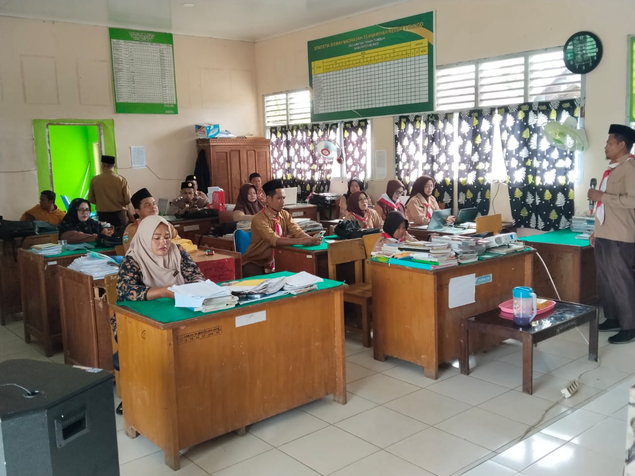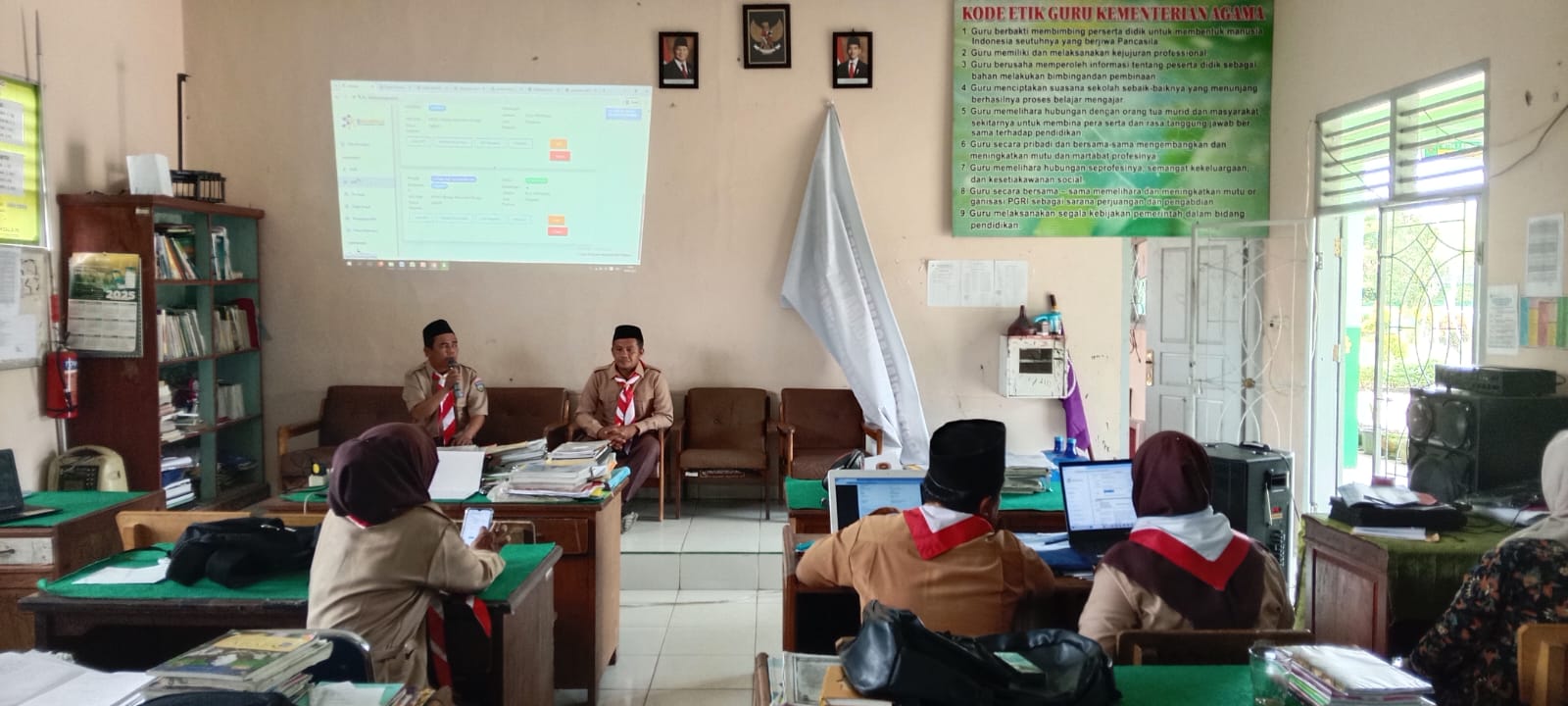 Tanah Tumbuh (MTsN 7 Bungo) — Usai mengikuti upacara peringatan Hari Pramuka, seluruh Aparatur Sipil Negara (ASN) di lingkungan MTsN 7 Bungo kembali ke madrasah untuk mengikuti kegiatan briefing dan pengisian Sasaran Kinerja Pegawai (SKP) Triwulan Tahun 2025 melalui aplikasi e-Kinerja. Kegiatan ini dilaksanakan pada Kamis (14/8/2025), didampingi langsung oleh Kepala Madrasah, Bapak Firdaus, Ar, S.Pd.I.