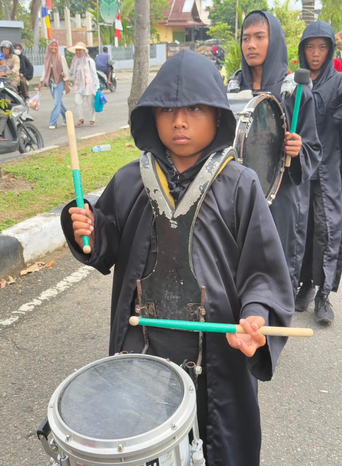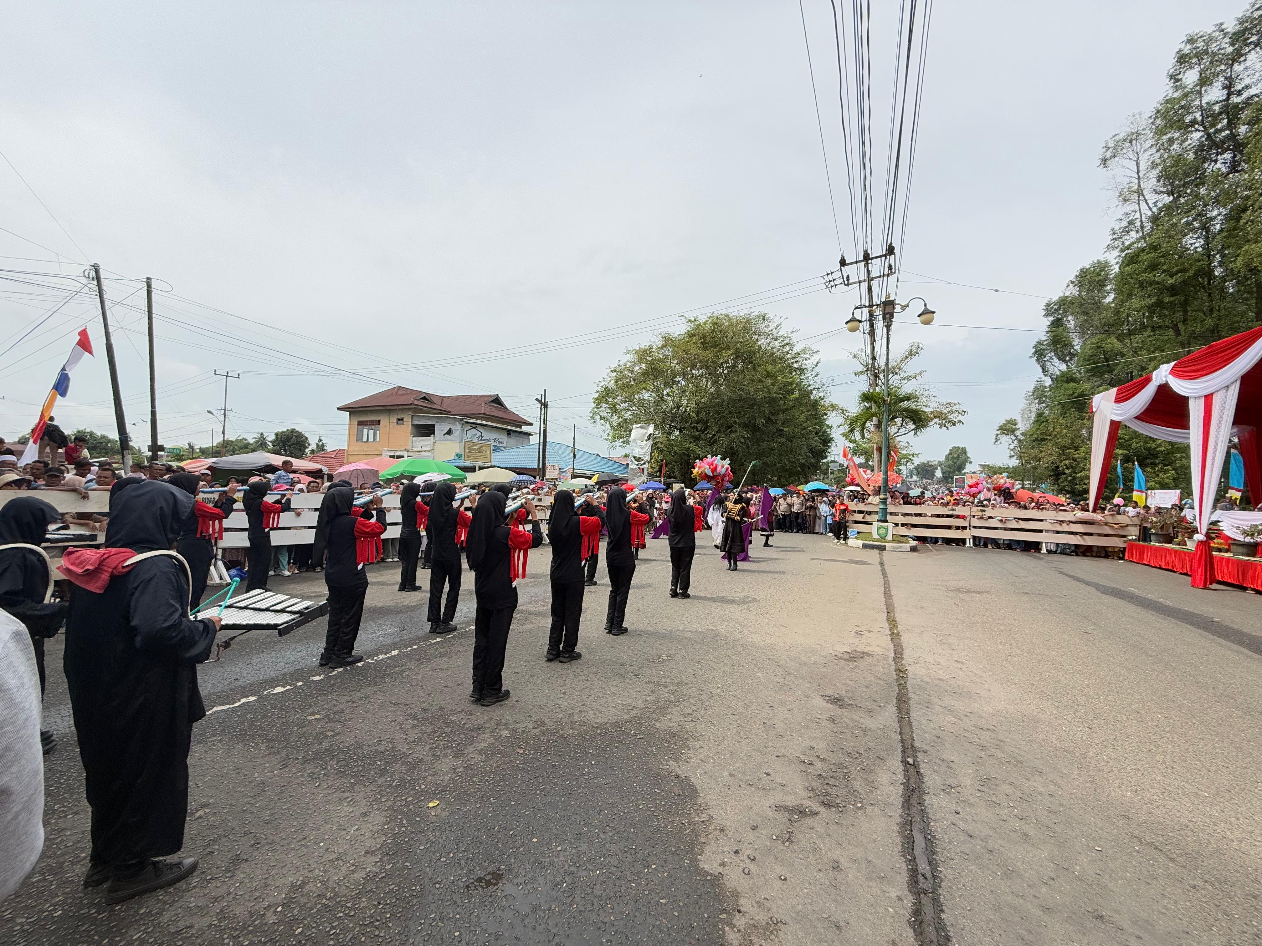 Parade dimulai pukul 07.30 WIB. Meskipun sempat diguyur gerimis, semangat tim MTsN 7 Bungo tidak surut. Justru, cuaca tersebut menambah nuansa heroik dan emosional dalam setiap langkah mereka. Gemuruh alat musik yang berpadu dengan langkah tegap para pemain marching band menciptakan suasana meriah dan penuh kesan.
