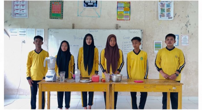 Pembelajaran yang berlangsung di dalam kelas ini dibagi ke dalam beberapa kelompok. Setiap kelompok tidak hanya diminta menulis teks prosedur, tetapi juga mempraktikkannya secara langsung. Para siswa mempersiapkan alat dan bahan, lalu menjelaskan langkah-langkah pembuatan minuman tersebut secara lisan dalam Bahasa Inggris, sehingga pembelajaran berlangsung aktif dan interaktif.