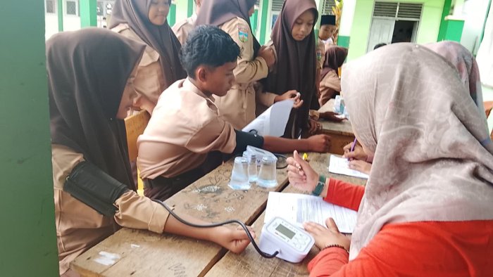 Tanah Tumbuh (MTsN7_Bungo) - Ratusan siswa-siswi MTsN 7 Bungo menunjukkan antusiasme tinggi saat mengikuti kegiatan Cek Kesehatan Gratis (CKG) yang digelar di halaman utama madrasah pada Sabtu (30/8/2025). Kegiatan ini merupakan hasil kerja sama antara pihak madrasah dengan UPT Puskesmas Tanah Tumbuh.