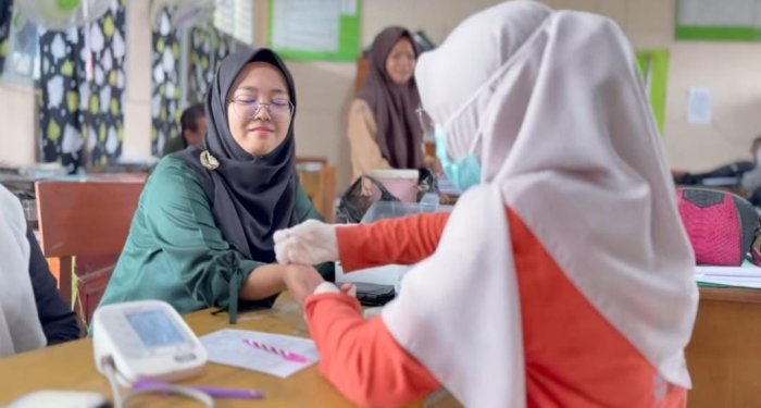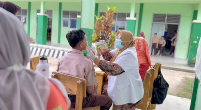 Dr. Yelli Vavorini, dalam kesempatan tersebut, menambahkan bahwa CKG tidak hanya diperuntukkan bagi anak-anak sekolah saja. "CKG ini bisa dilakukan oleh semua kalangan, mulai dari bayi, balita, anak sekolah, hingga orang dewasa dan lansia. Hari ini, kami melaksanakan CKG di MTsN 7 Bungo dengan diikuti oleh 360 peserta, yang terdiri dari siswa, guru, dan staf madrasah," ungkap Dr. Yelli.