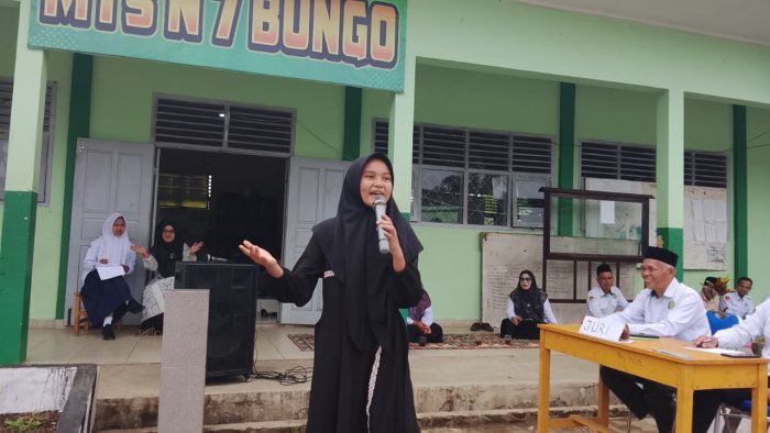 Tanah Tumbuh (MTsN7_Bungo) - Suasana halaman utama madrasah pada Selasa (9/9/2025) tampak meriah saat para peserta lomba ceramah agama tampil dalam rangkaian peringatan Maulid Nabi Muhammad SAW 1447 H. Dengan tema besar Maulid Nabi Muhammad SAW, para peserta menunjukkan berbagai ekspresi dan gaya penyampaian yang khas, sesuai dengan karakter masing-masing.