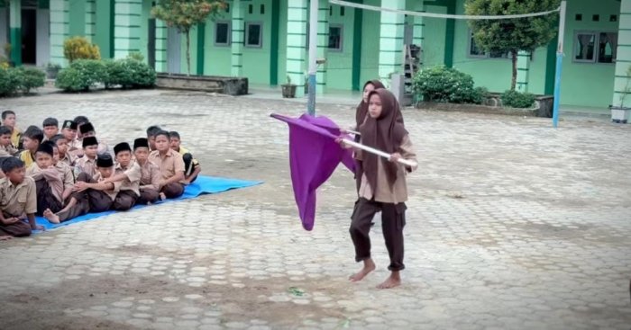 Acara Minat Bakat yang rutin diadakan setiap Sabtu pagi ini bertujuan untuk mengembangkan potensi siswa dalam berbagai bidang sekaligus memberikan wadah bagi mereka untuk mengekspresikan diri. Penampilan Colour Guard dari kedua siswi ini menjadi bukti nyata bakat dan dedikasi siswa MTsN 7 Bungo.