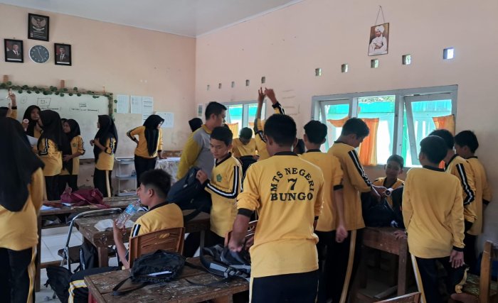 Tanah Tumbuh (MTsN 7 Bungo) - Pengurus Organisasi Siswa Intra Madrasah (OSIM) MTsN 7 Bungo, didampingi oleh salah satu guru, Bapak Muhammad Nur, S.Pd.I, mengadakan razia mendadak terhadap seluruh siswa pada Rabu (18/9/2025). Kegiatan ini merupakan langkah preventif dalam menjaga kedisiplinan serta menciptakan lingkungan belajar yang aman dan kondusif.