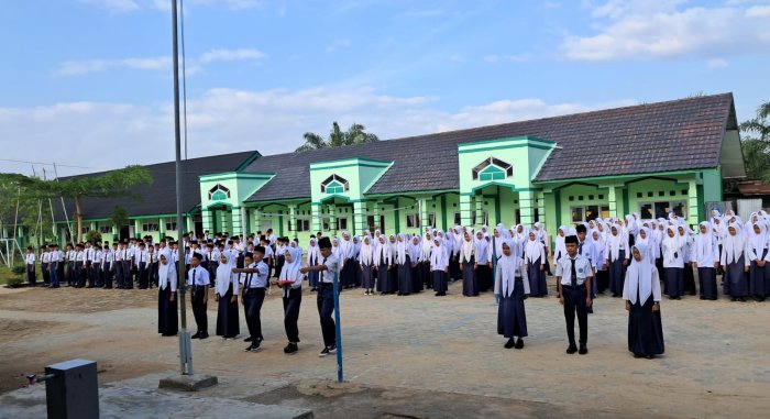 Tanah Tumbuh (MTsN 7 Bungo) - Upacara bendera rutin di MTsN 7 Bungo yang dilaksanakan pada Senin (22/9/2025) berlangsung sukses dan lancar. Bertempat di halaman utama madrasah, kegiatan ini diikuti oleh seluruh elemen madrasah, mulai dari siswa, guru, tenaga kependidikan, hingga pimpinan madrasah.