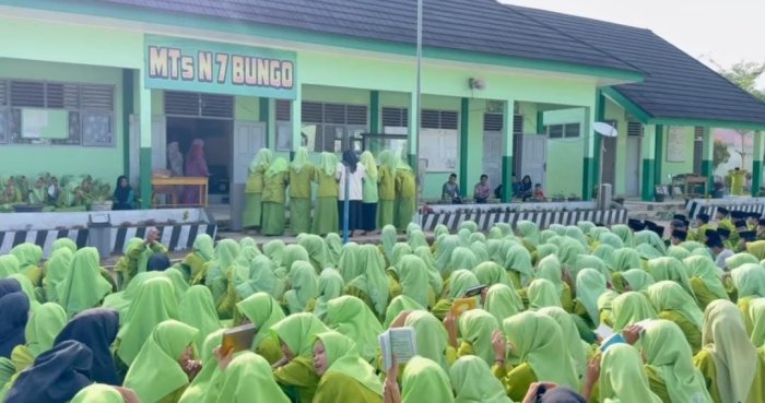 Tanah Tumbuh (MTsN 7 Bungo) - MTsNegeri 7 Bungo kembali menggelar kegiatan keagamaan rutin berupa pengajian dan pembacaan Surah Yasin pada Jumat pagi (26/9/2025). Kegiatan ini merupakan agenda mingguan yang bertujuan membentuk karakter religius serta mempererat ukhuwah islamiyah di kalangan siswa, guru, dan seluruh warga madrasah.