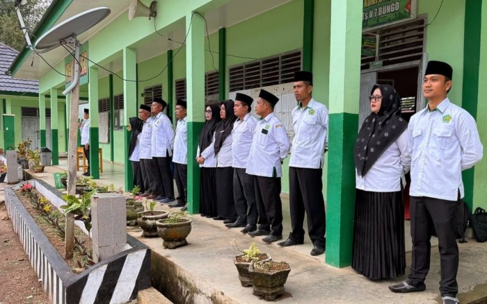 Tanah Tumbuh (MTsN 7 Bungo) - MTsN 7 Bungo kembali melaksanakan kegiatan rutin Upacara Bendera pada Senin (29/9/2025) yang berlangsung di halaman utama madrasah. Kegiatan ini diikuti secara antusias oleh seluruh warga madrasah, mulai dari Kepala Madrasah, Kaur TU, dewan guru, staf TU, hingga seluruh siswa-siswi.
