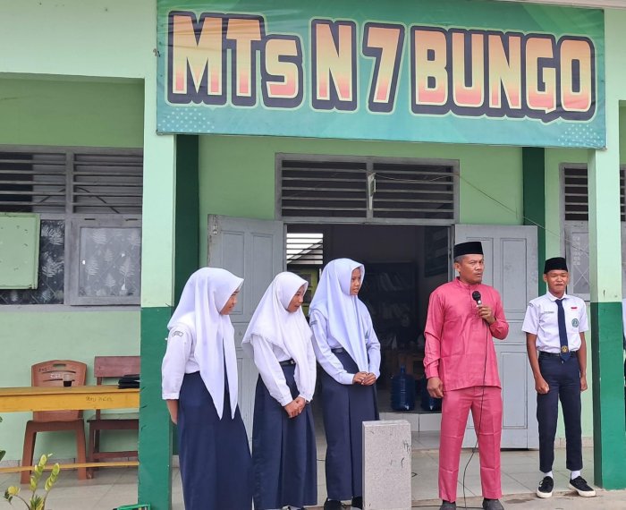 Tanah Tumbuh (MTsN 7 Bungo) - Dalam rangka meningkatkan literasi digital dan kepekaan siswa terhadap arus informasi, serta mendukung transformasi digital di lingkungan madrasah, Kepala MTsN 7 Bungo, Bapak Firdaus, Ar, S.Pd.I., kembali melaksanakan kuis interaktif seputar berita dan informasi media sosial madrasah, Senin (13/10/2025).