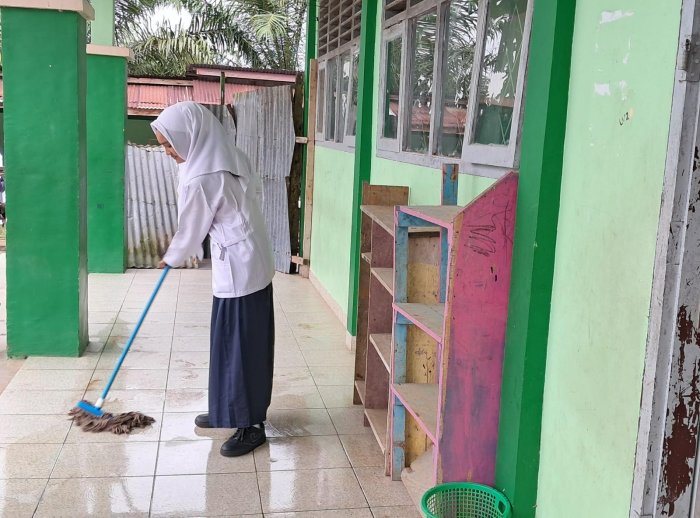 Tanah Tumbuh (MTsN 7 Bungo) - Siswa-siswa MTsNegeri 7 Bungo kembali menunjukkan kebiasaan positif yang patut diteladani. Dengan penuh tanggung jawab, mereka membersihkan lantai yang basah dan kotor di lingkungan madrasah dengan cara mengepel, meskipun jadwal piket kelas telah dilaksanakan pada hari sebelumnya.