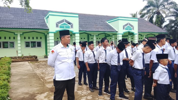 Tanah Tumbuh (MTsN 7 Bungo) - Biasanya guru berada di barisan depan saat upacara bendera berlangsung. Namun, pemandangan berbeda terlihat pada pelaksanaan upacara rutin hari Senin (20/10/2025) di halaman depan MTsNegeri 7 Bungo. Beberapa guru tampak tidak berdiam di satu tempat, melainkan berkeliling area lapangan untuk memastikan seluruh rangkaian kegiatan upacara berjalan dengan tertib dan lancar.