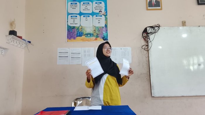 Tanah Tumbuh (MTsN 7 Bungo) - Setelah menyelesaikan rangkaian kegiatan English Exposure yang penuh antusiasme, guru Bahasa Inggris MTsN 7 Bungo, Ibu Cinta Invia Wulandari, melaksanakan assessment akhir di kelas VII A pada Rabu (29/10/2025). Kegiatan ini menjadi bagian dari tahap penutup dalam aktualisasi LATSAR CPNS yang dijalankan oleh beliau.