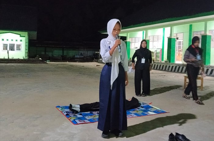 Tanah Tumbuh (MTsN 7 Bungo) - Di sela-sela kegiatan perkemahan Palang Merah Remaja (PMR) Madya MTsNegeri 7 Bungo, para peserta kemah mendapatkan berbagai materi dan aktivitas menarik yang dikemas secara edukatif dan menyenangkan. Kegiatan yang berlangsung pada Sabtu (1/11/2025) ini dipusatkan di halaman utama madrasah dan diikuti dengan penuh semangat oleh seluruh peserta.