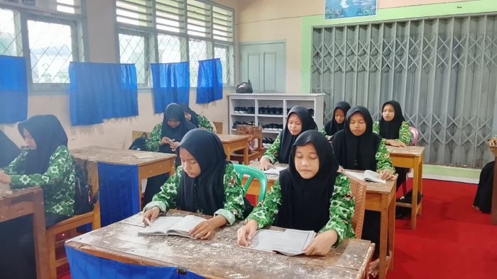 Tanah Tumbuh (MTsN 7 Bungo) - Semangat menghafal Al-Qur'an terus digelorakan di lingkungan MTsNegeri 7 Bungo. Pada Rabu (5/11/2025), Ibu Cinta selaku wali kelas VII A kembali melaksanakan kegiatan penguatan tahfidz bersama peserta didiknya di ruang kelas VII A.