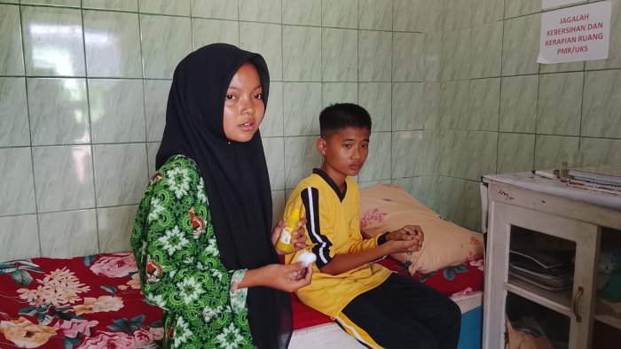"Tim kami langsung memberikan kompres dingin dan membersihkan luka untuk mencegah infeksi. Alhamdulillah, kondisinya tidak terlalu parah dan kini sudah membaik," ujar salah satu anggota PMR Madya MTsN 7 Bungo.