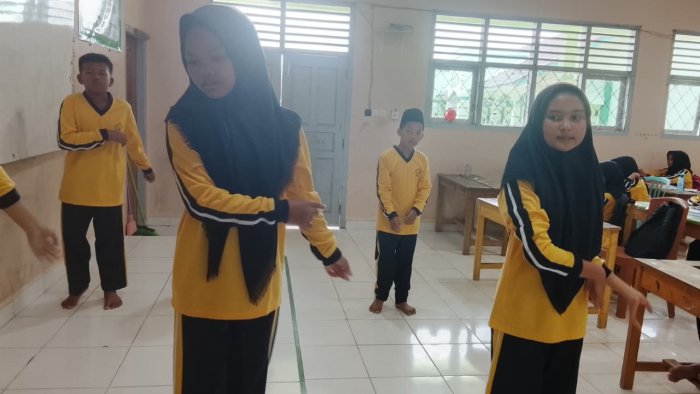 Tanah Tumbuh (MTsN 7 Bungo) - Dalam rangka melestarikan budaya daerah, siswa kelas VII C MTsNegeri 7 Bungo melaksanakan kegiatan praktik seni tari daerah pada Kamis (6/11/2025) di ruang kelas. Kegiatan ini dipandu langsung oleh guru Seni Budaya, Ibu Widyawati.