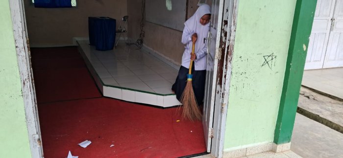 Di setiap ruang kelas, para siswa tampak kompak menyapu lantai, mengelap papan tulis, merapikan meja dan kursi, serta memastikan kelas dalam keadaan rapi dan bersih sebelum meninggalkan madrasah. Rutinitas ini tidak hanya menjaga kebersihan, tetapi juga memudahkan proses belajar mengajar keesokan harinya karena ruang kelas sudah tertata sejak sore hari.