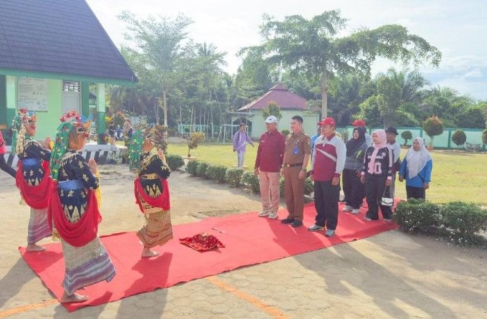 Tanah Tumbuh (MTsN 7 Bungo) - Suasana hangat dan penuh kehormatan menyambut kedatangan Sekcam Tanah Tumbuh beserta rombongan pada pembukaan rangkaian perlombaan antar guru se-Kecamatan Tanah Tumbuh dalam rangka memeriahkan HUT PGRI ke-80 dan Hari Guru Nasional (HGN) 2025. Kedatangan para tamu kehormatan tersebut disambut dengan persembahan Tari Sekapur Sirih, sebuah tarian tradisional khas Melayu Jambi yang sarat makna penghormatan.