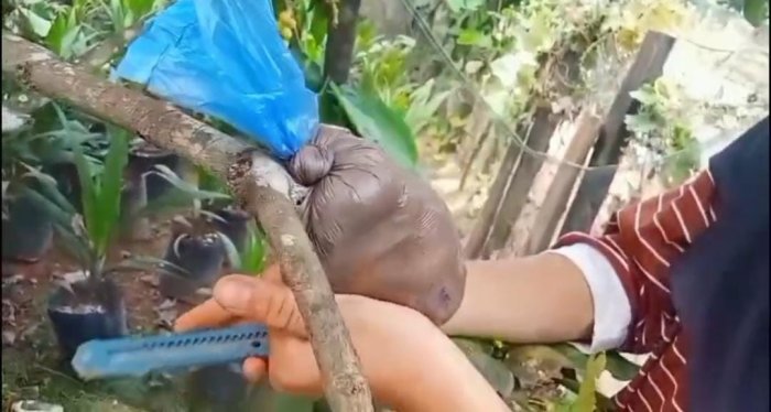 Tanah Tumbuh (MTsN 7 Bungo) - Dalam rangka meningkatkan kualitas kognitif dan psikomotorik peserta didik di bidang sains, siswa kelas IX MTsN 7 Bungo melaksanakan salah satu proyek praktik Ilmu Pengetahuan Alam (IPA), yaitu kegiatan mencangkok tanaman yang dilakukan secara mandiri di lingkungan tempat tinggal masing-masing.